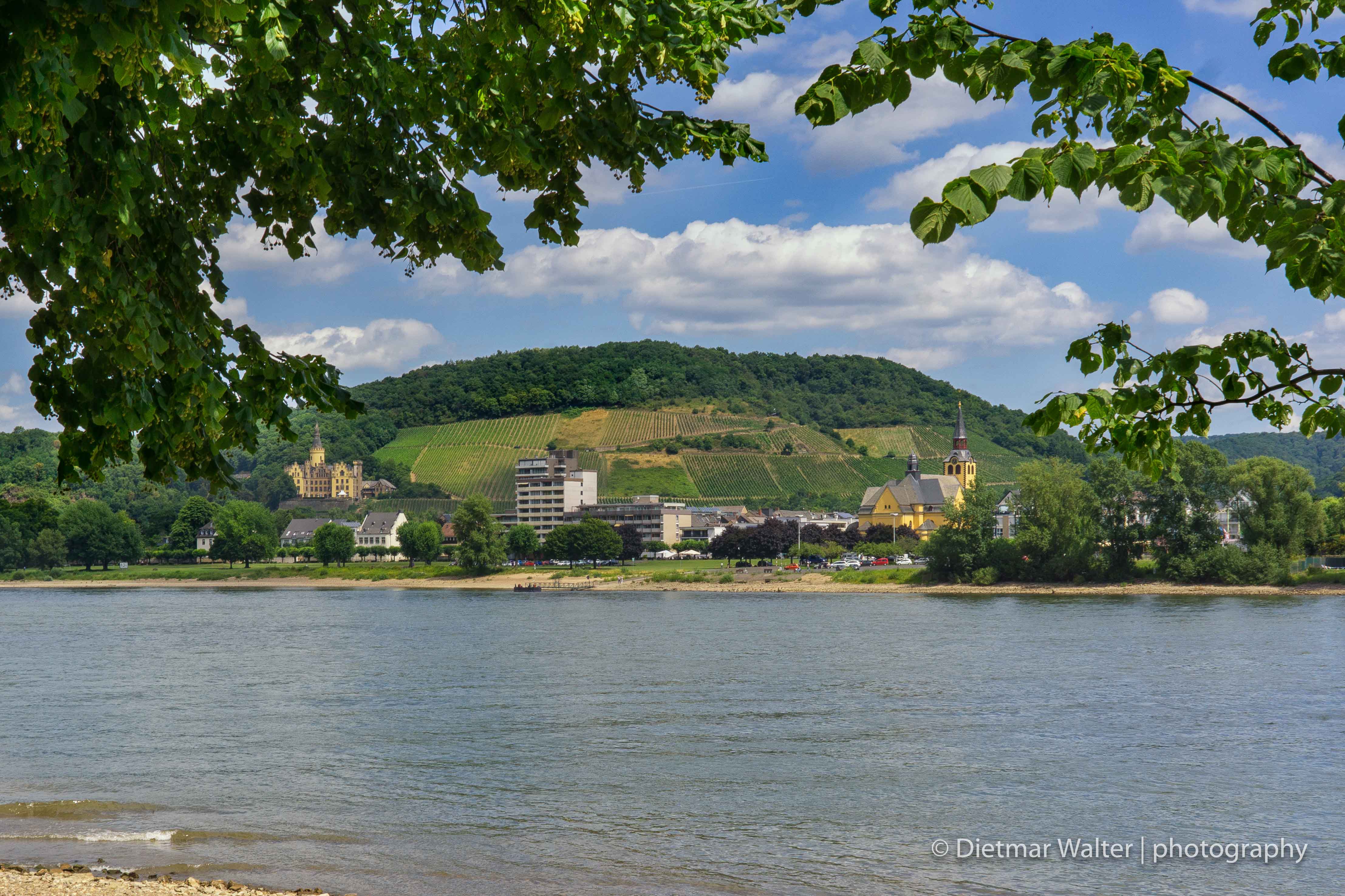 Vorheriges Bild Nächstes Bild Blick über den Rhein Von Bad Breisig nach Bad Hönningen mit Schloß Arenfels und Pfarrkirche St. Peter & Paul